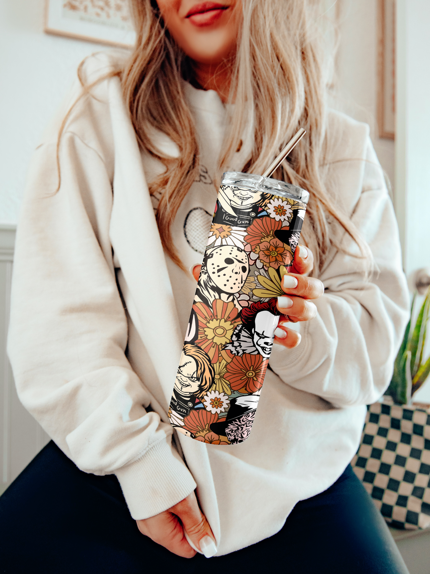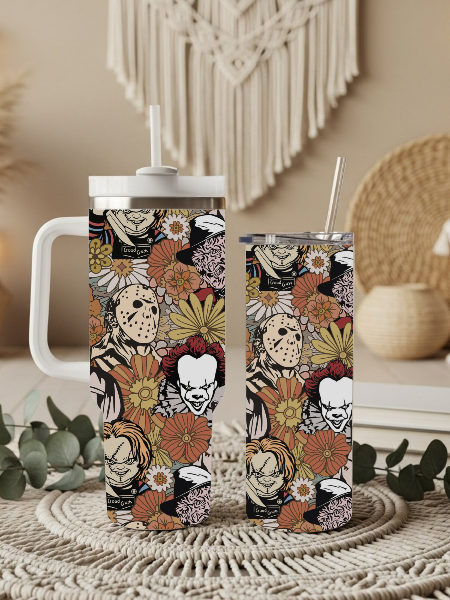 Tumblers include a lid, complimentary straw, and Care instructions.